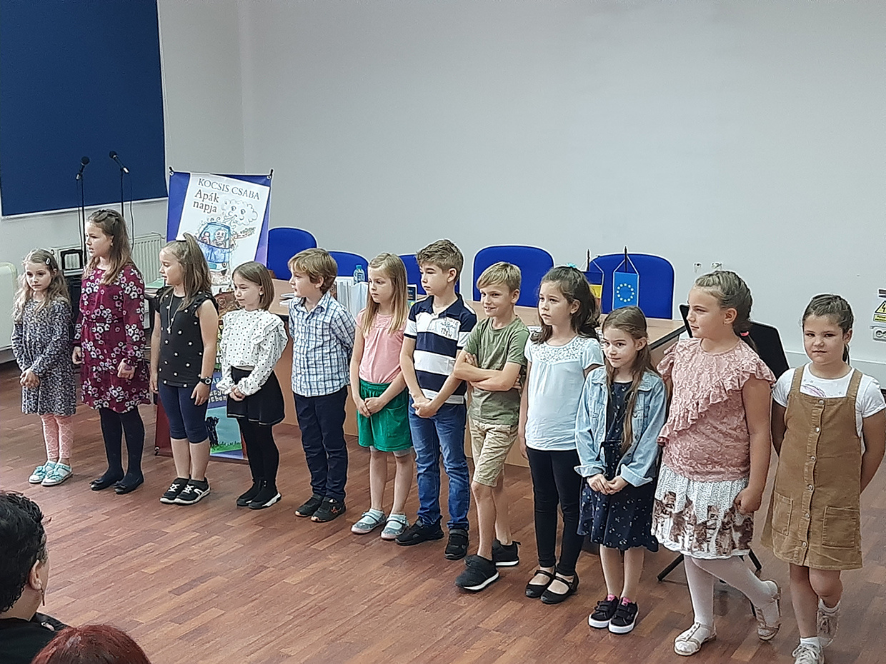 În Amfiteatrul Bibliotecii a avult loc întâlnirea cu domnul Kocsis Csaba colaborator al revistei de cultură Várad, ziarist, scriitor, poet, artist fotograf, manager cultural, muzician. Autorul din Berettyóújfalu a prezentat volumele de poezii pentru copii Apák napja şi Megrajzolom az ebédet. Copiii de la Şcoala Gimnazială Szacsvay Imre (clasa I-