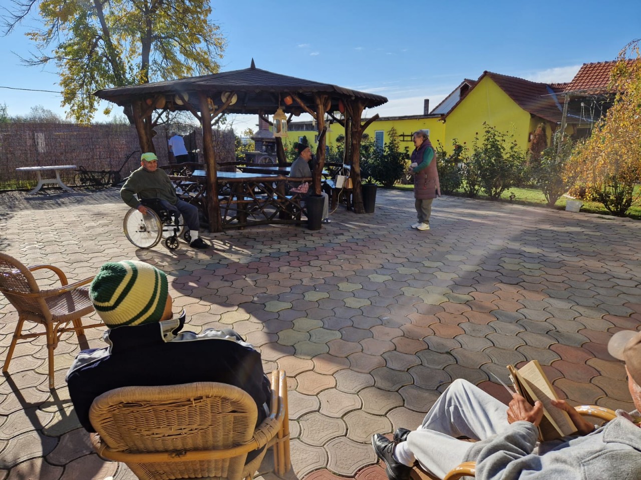 Anica, una dintre rezidente, cântă frumos, are o memorie excepțională, știe nenumărate cântece, e venită de undeva din Moldova. În corpul de clădiri unde e adăpostită biblioteca, Maria Matei a cântat și a vorbit cu rezidenții bărbați, care au profitat de ziua caldă de noiembrie și au stat afară la soare.